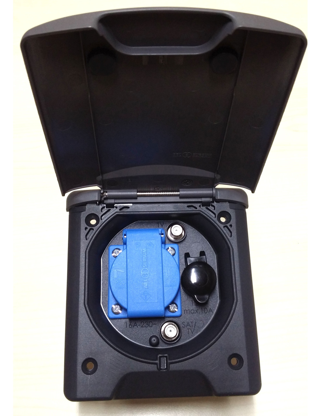 Questo outlet è adatto per collegamenti a 220V, 12 V, Tv e Satellite.