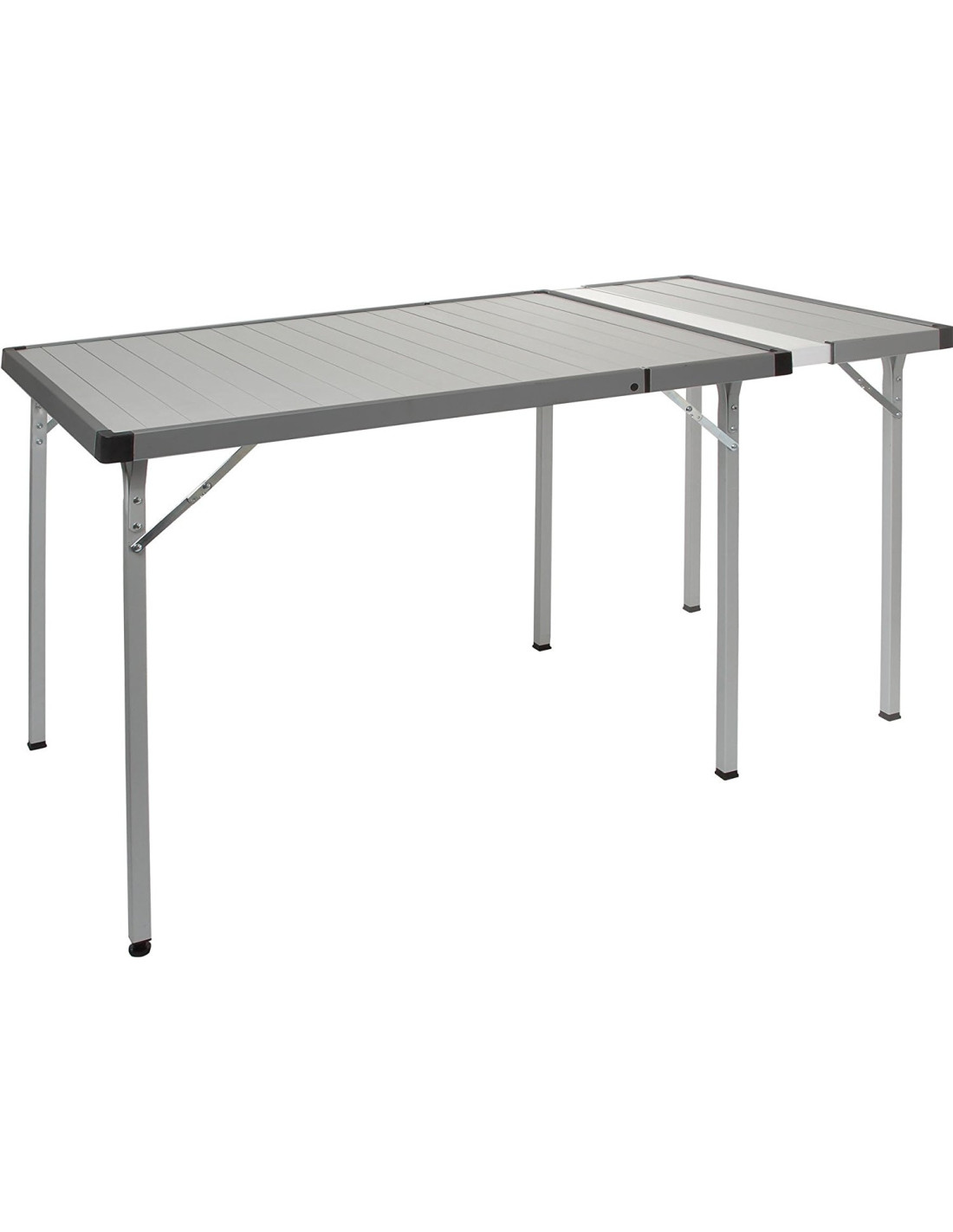 Tavolo pieghevole con struttura in alluminio stabile e base completa in alluminio di alta qualità.