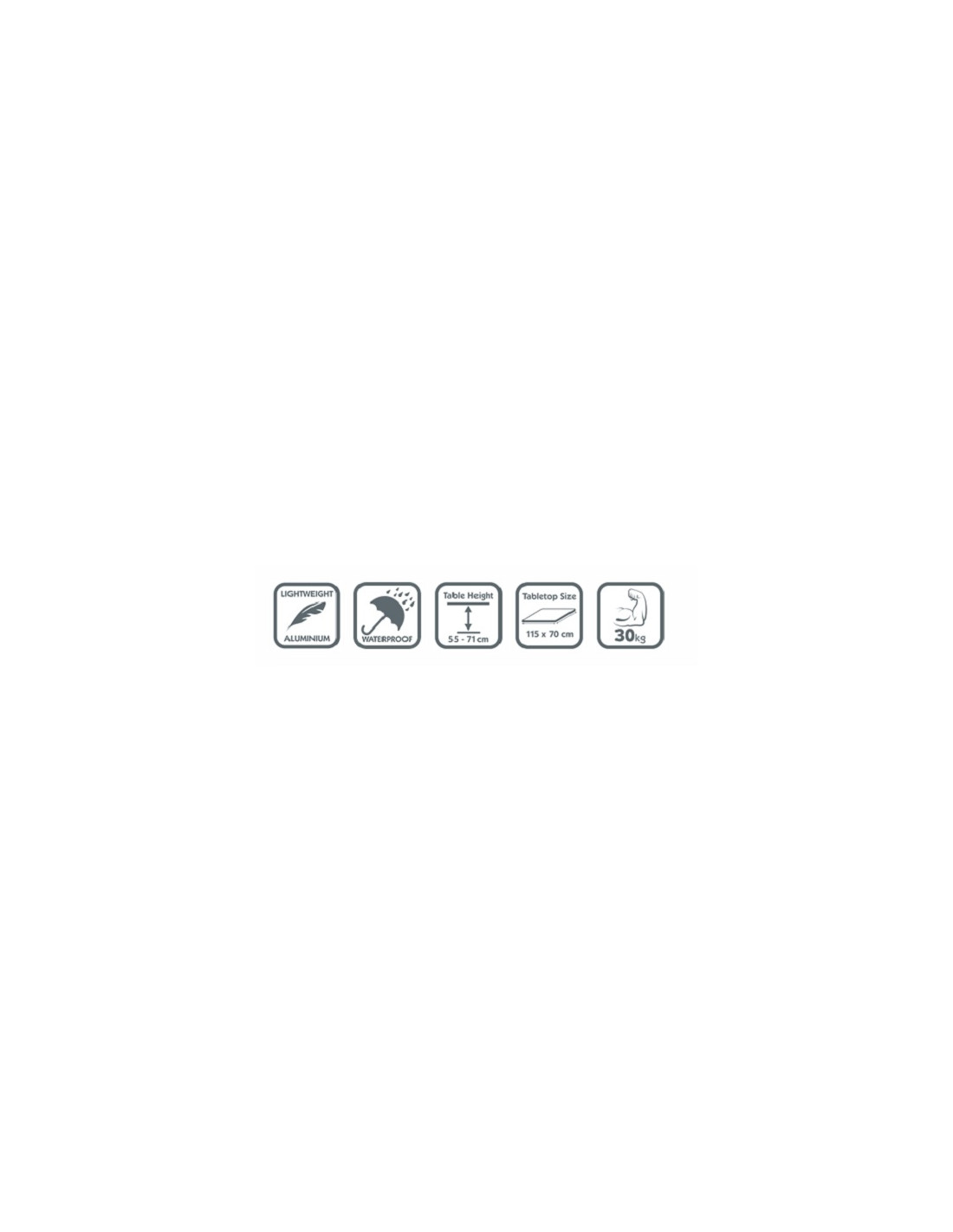 Con un telaio in alluminio e una copertura impermeabile, questo tavolo è ideale per gruppi, roulotte, picnic o il giardino.