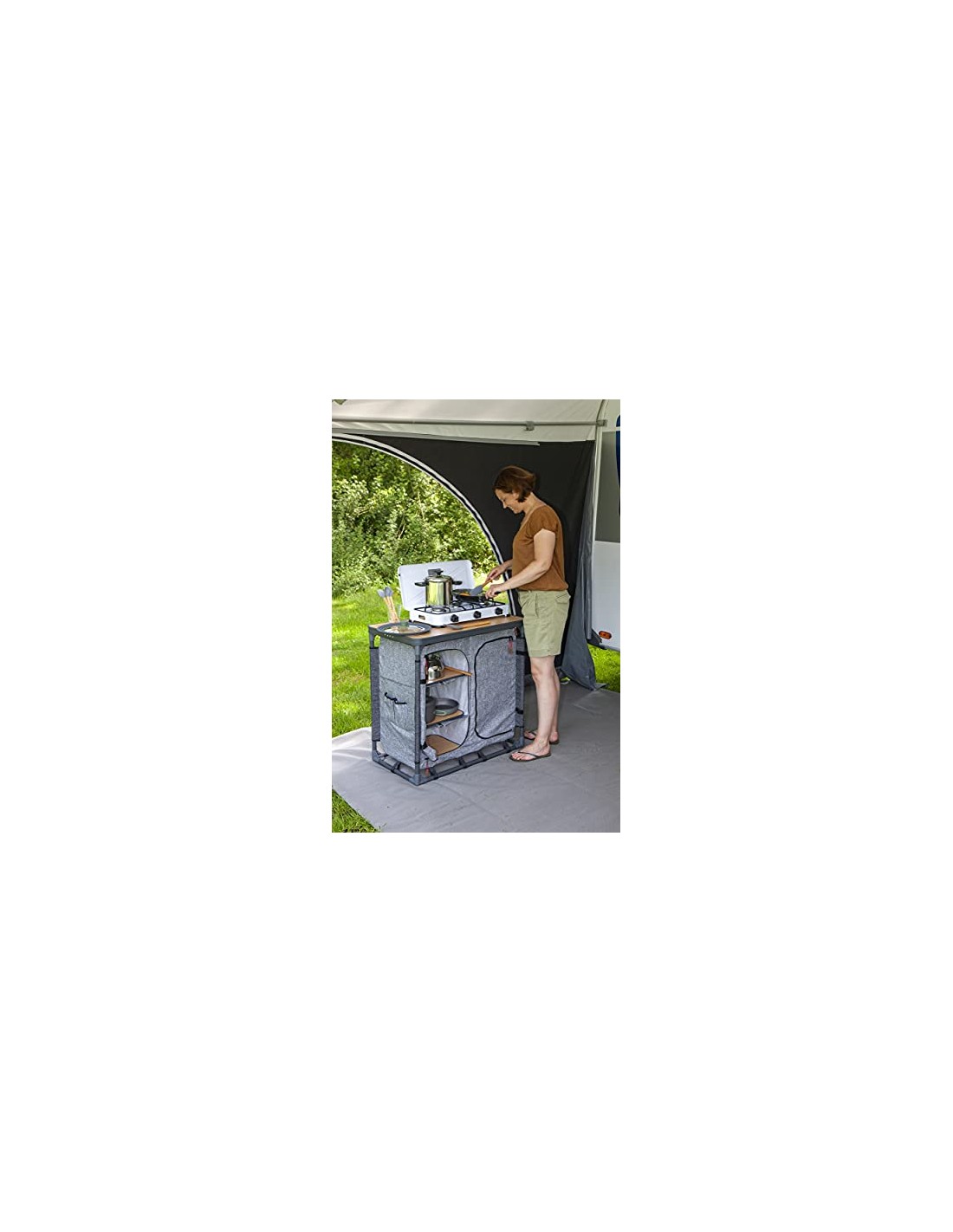 Il Mobili da cucina Camping Midland Etna con lavello, in alluminio resistente e design pieghevole, è la scelta perfetta per cucinare all'aperto in campeggi, caravan e camper.