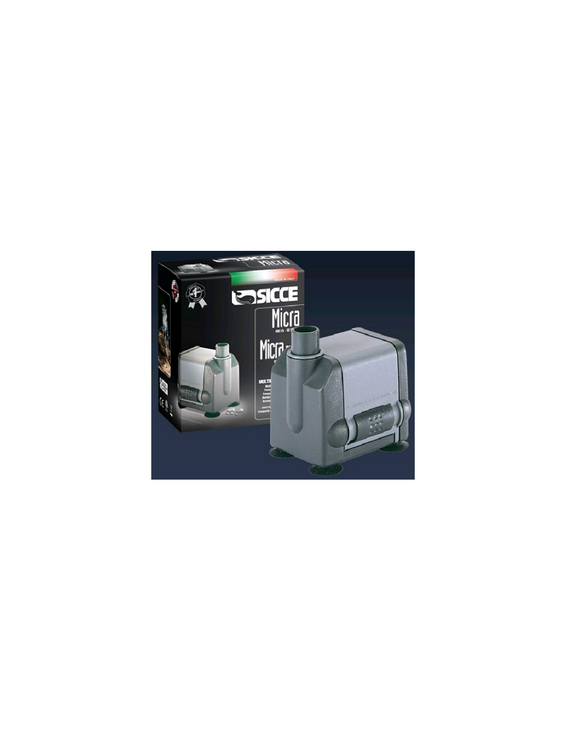 Ha un filtro spugna intercambiabile e offre una regolazione variabile del flusso da 400 a 600l/h, attraverso una chiave a 5 posizioni.