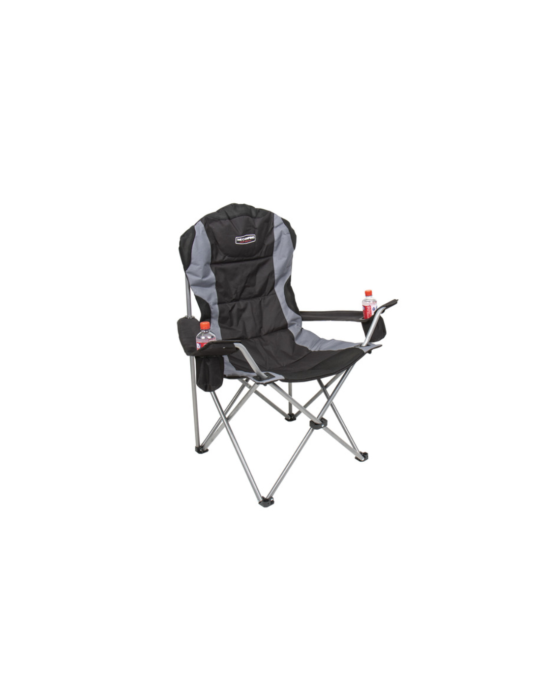 La struttura in acciaio argento e il materiale in poliestere 600D di alta qualità in nero/gris rendono questa sedia pieghevole una sedia da campeggio indispensabile per tutte le occasioni.