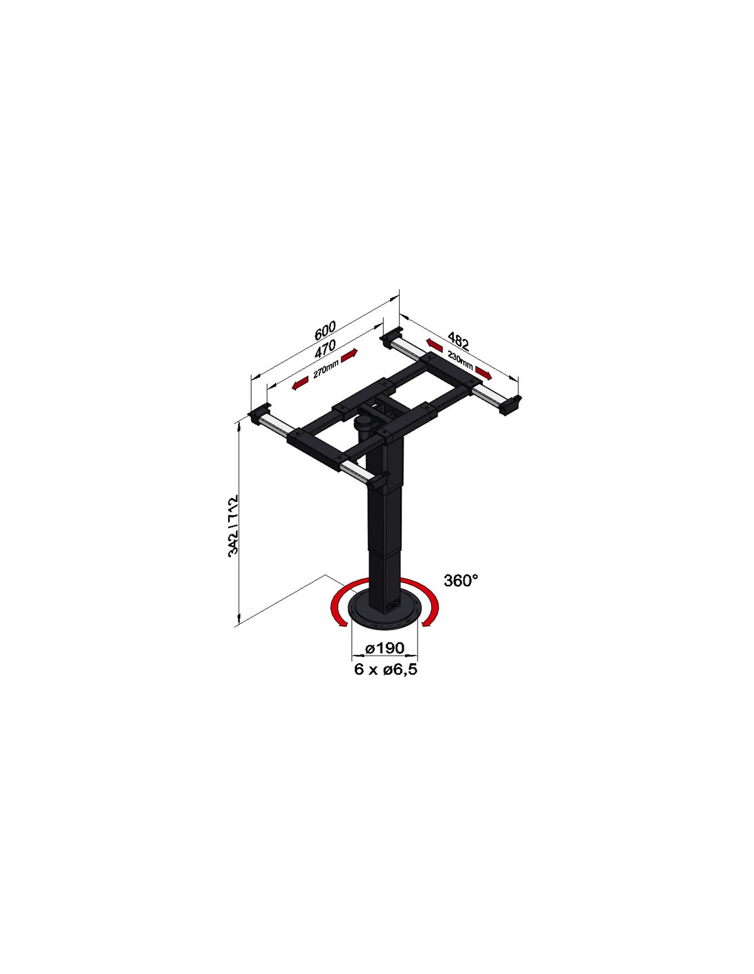 Tavolo telescopico con rotazione a 360o e spostamento 342-712 mm