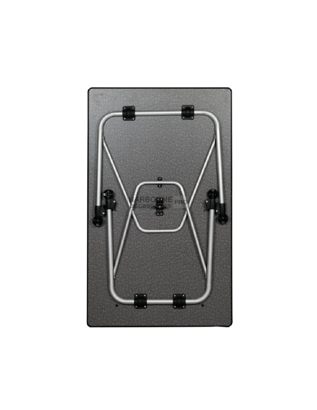 Tavolo con struttura in alluminio compatta con altezza di 5 cm una volta piegato.