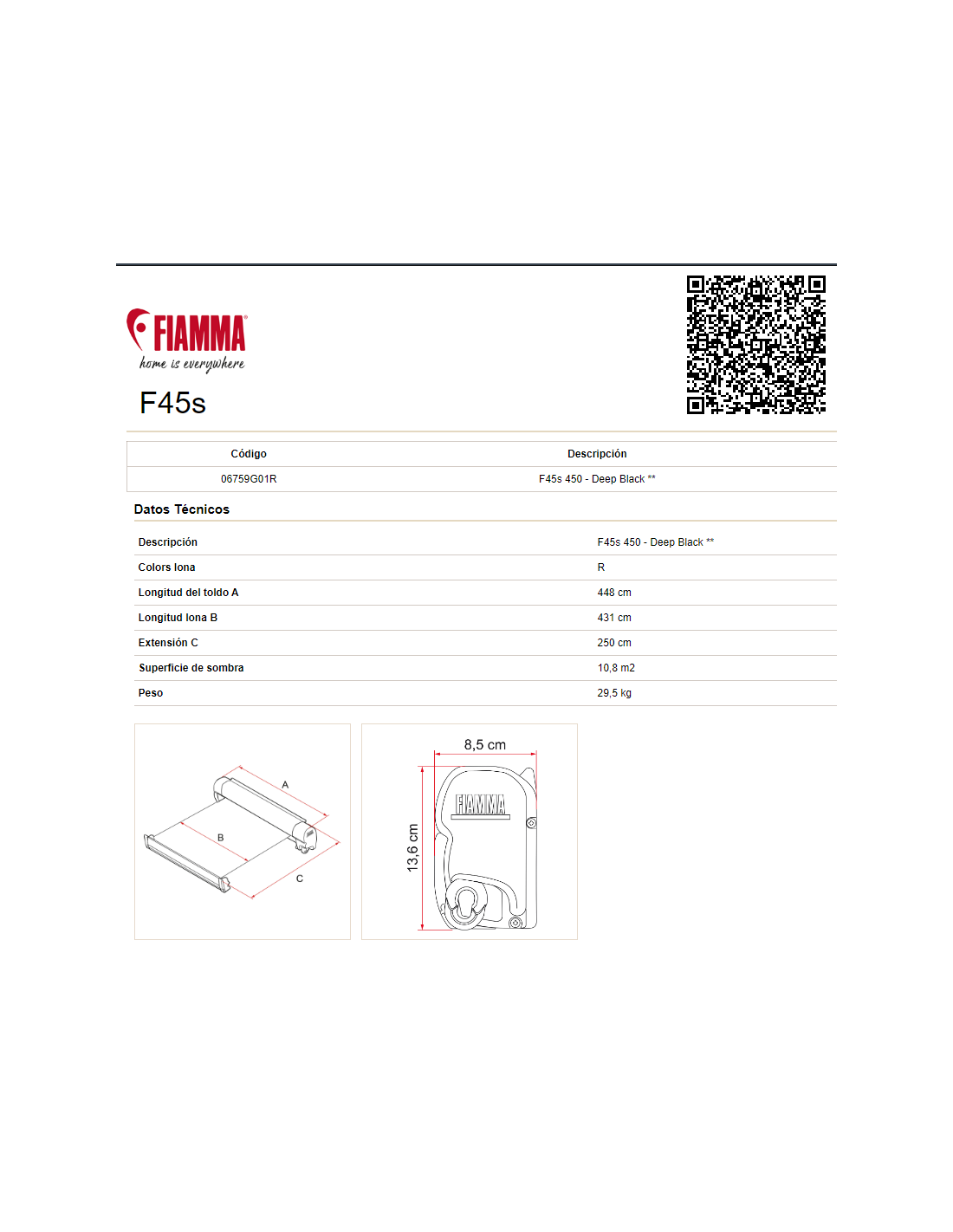 Toldo F45s PSA 260 Deep Black. Fiamma (Citroën ,Peugeot ,etc)