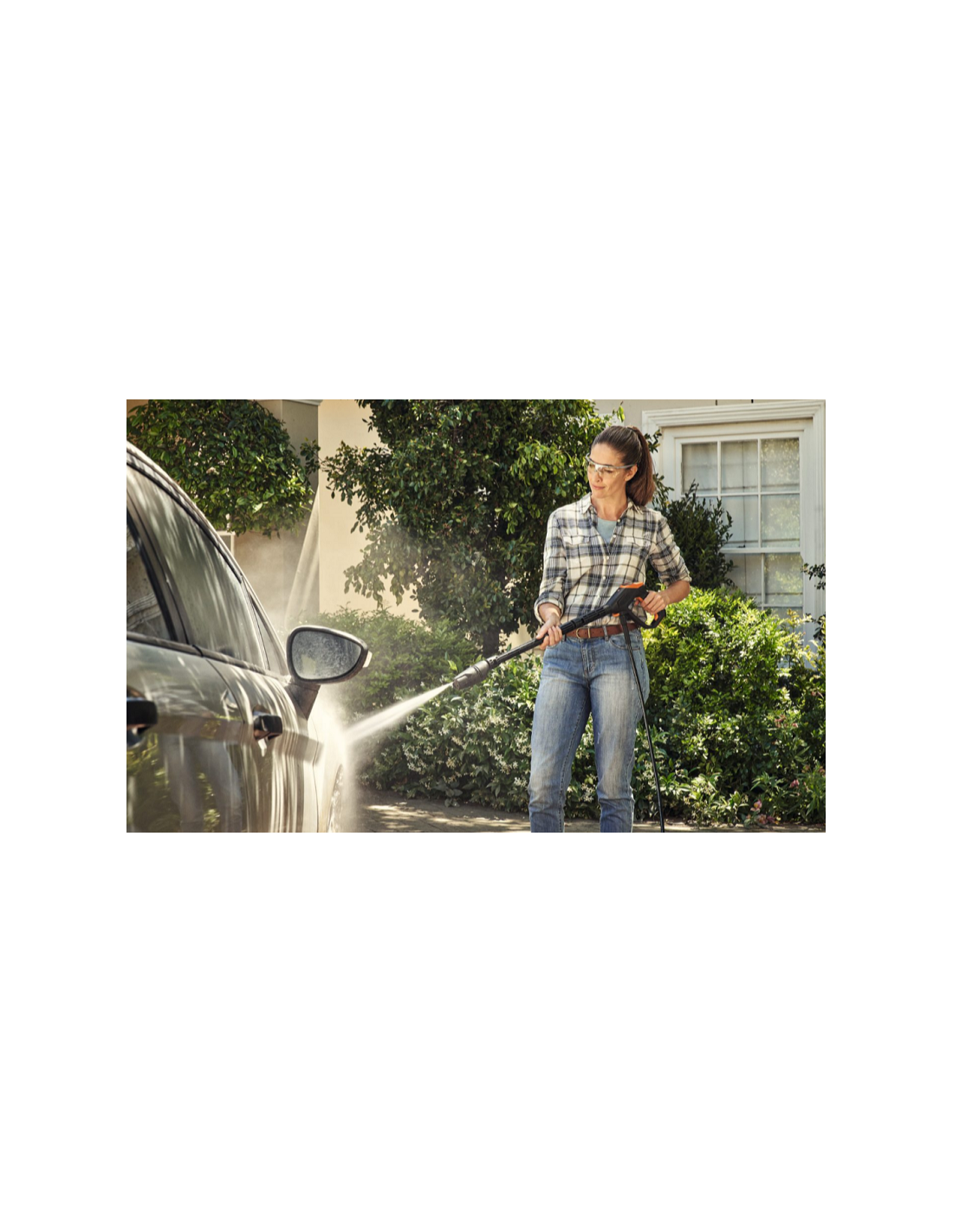 La sua robusta pompa in alluminio ad alta pressione genera una pressione massima di 150 barre per pulire intorno alla casa, nel giardino e anche veicoli.