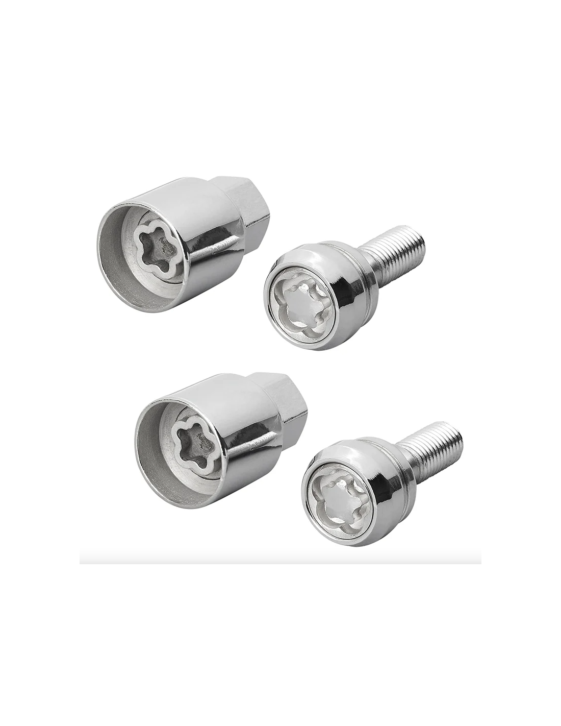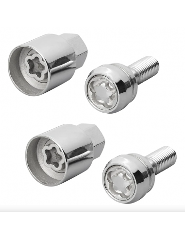 L'insieme di bulloni di bloccaggio è costituito da 2 bulloni di bloccaggio che non possono essere rimossi con una normale ruota dadi chiave e quindi prevenire il furto di una roulotte.
