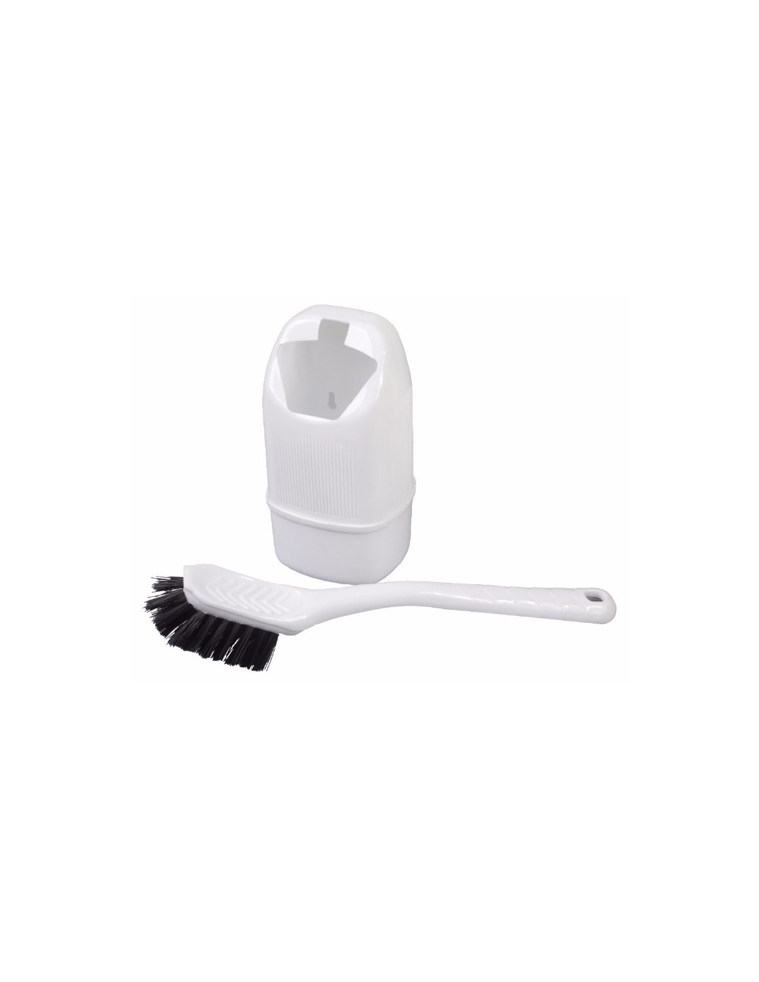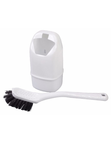Escova ou escova sanitária com recipiente para limpar a sanita de uma autocaravana ou caravana.