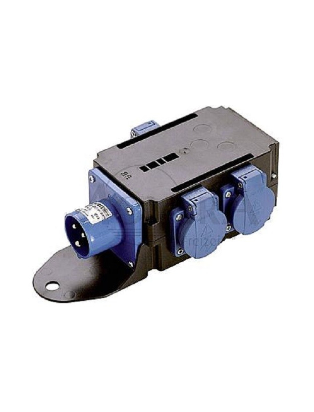Este distribuidor de energia é composto por 3 conexões Schuko com uma tomada de 230 V cada.