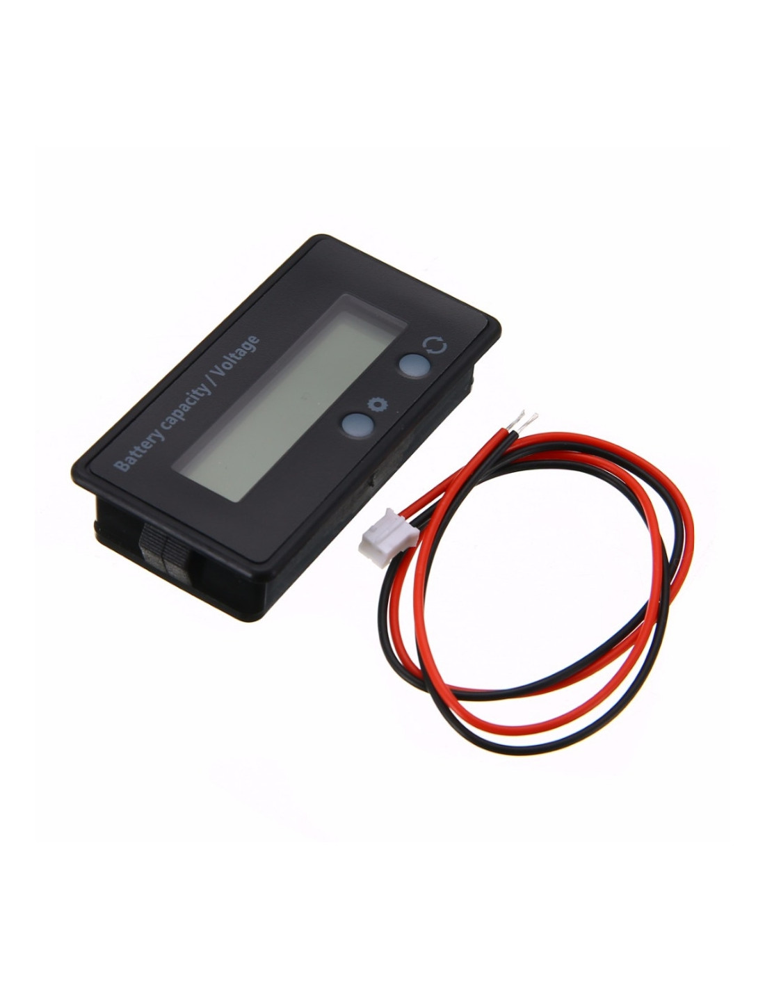 Voltímetro prático que mostra intuitivamente a capacidade da bateria à qual está conectado, por meio da porcentagem ou da medição da tensão.