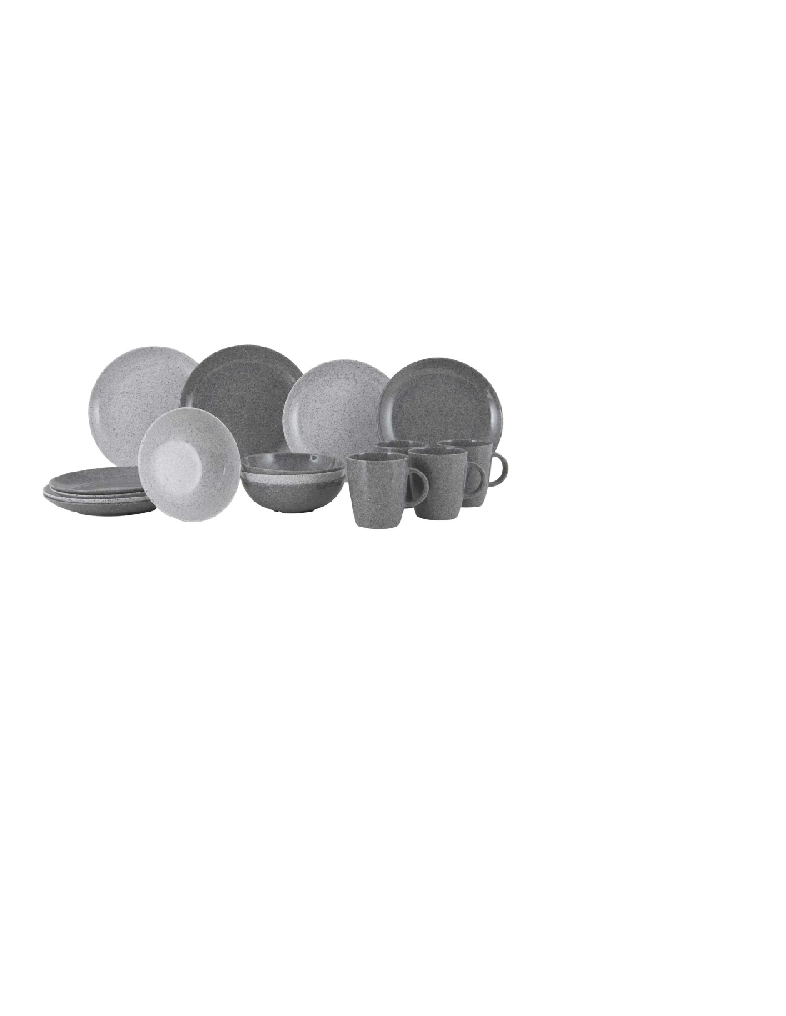 Serviço de jantar cinzento granito da coleção Solid line, composto por 16 peças de melamina de alta qualidade.