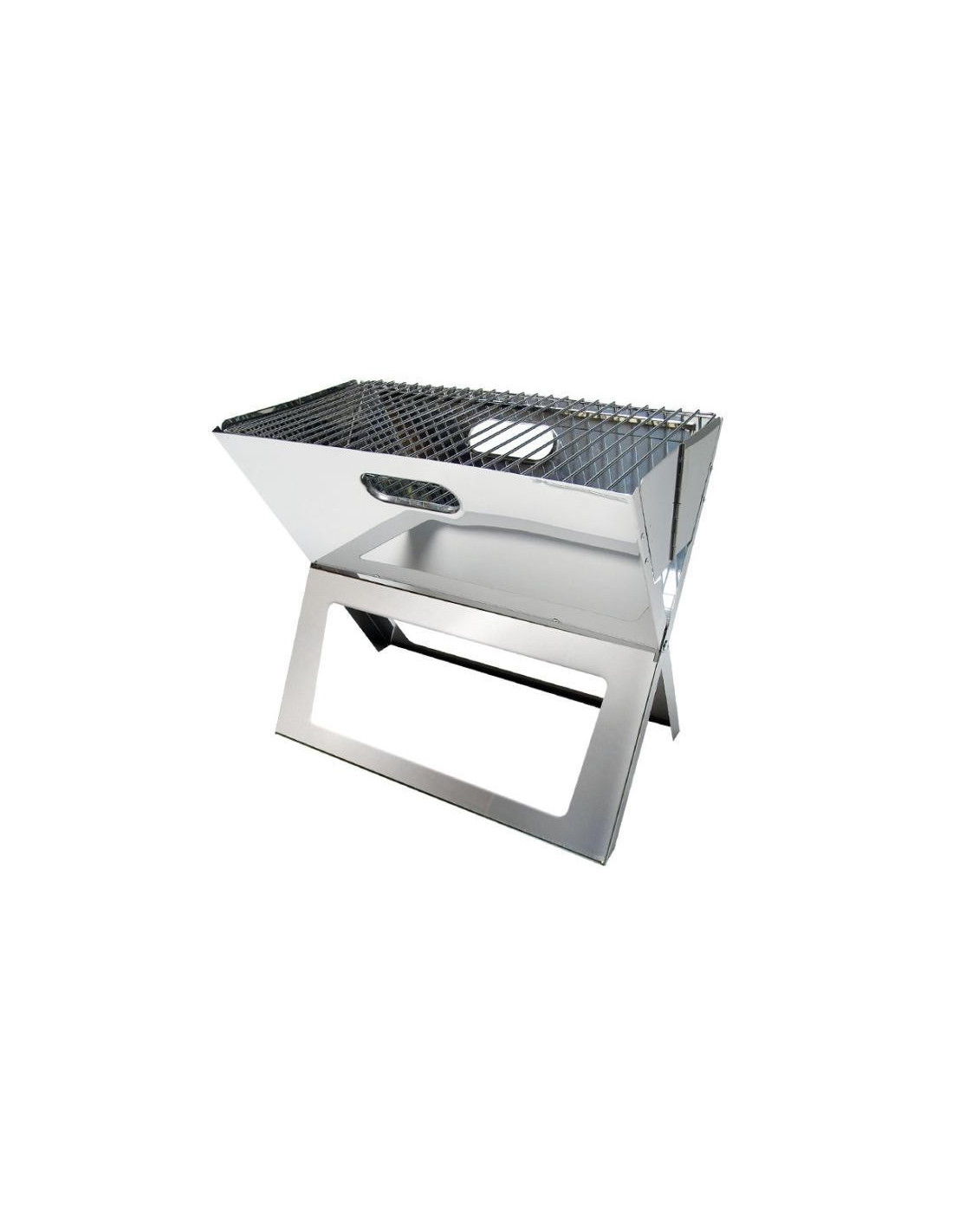 Magnífica churrasqueira com estrutura dobrável projetada para ocupar muito pouco espaço.