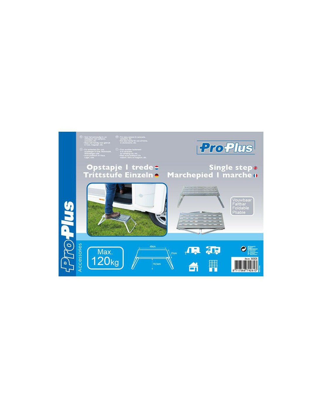 Este degrau dobrável em metal facilita a entrada/saída da sua caravana, autocaravana ou reboque.