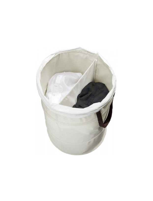 O cesto de roupas pop-up oferece amplo espaço.