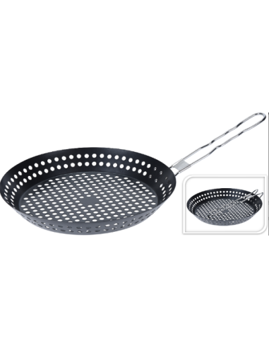 Frigideira de aço esmaltado com cabo especial dobrável para churrasco