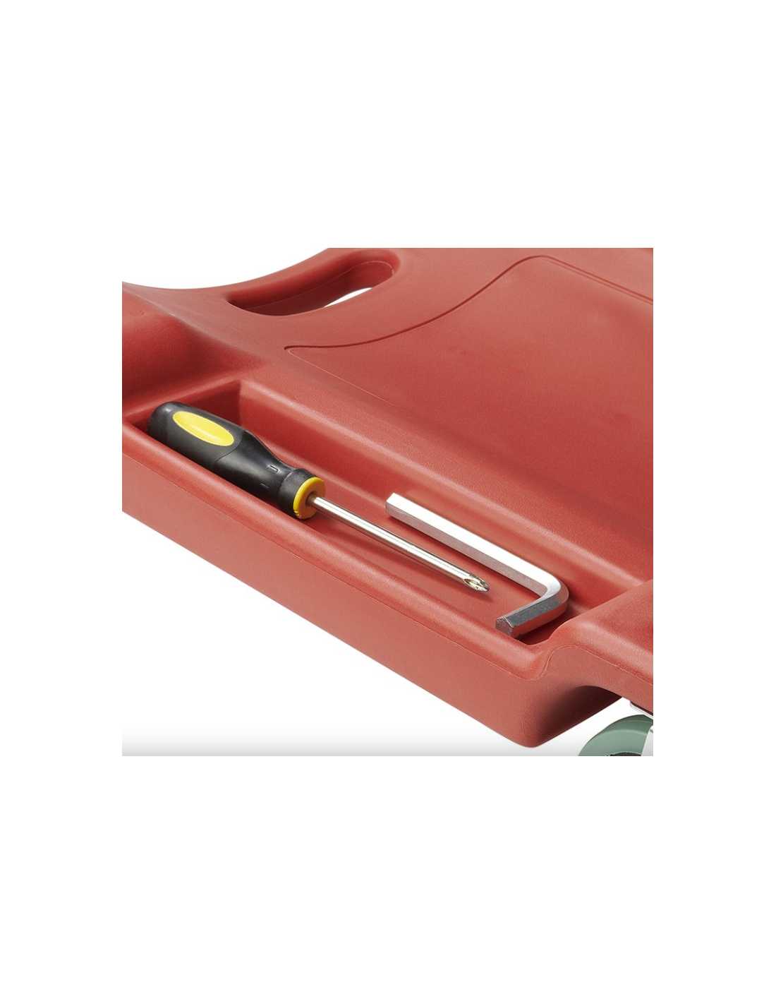 Apoio de cabeça acolchoado, possui espaço nas laterais para armazenamento de ferramentas.