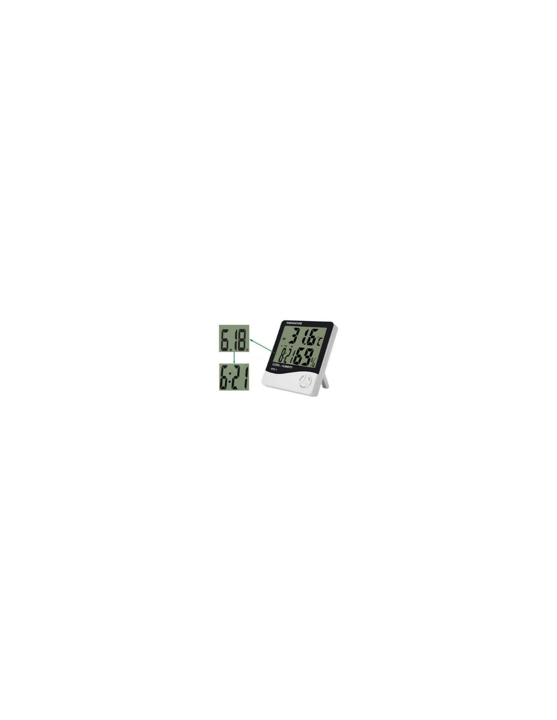 Termómetro digital interior y exterior LCD hora, temperatura y humedad