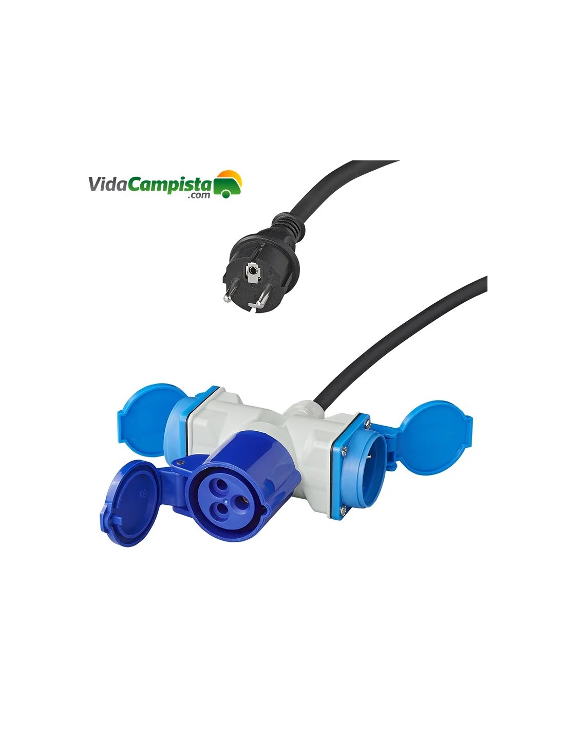 Cabo adaptador 150cm 3x2,5mm² do plugue Schuko ao conector 1xCEE + 2xSchuko - 16A