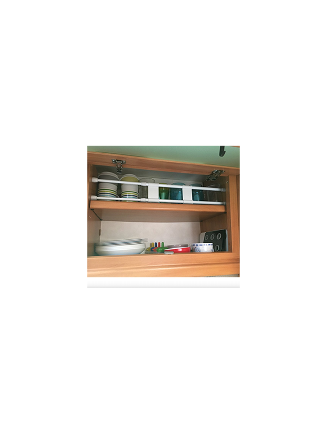 Barra trava para geladeira, eficaz na prevenção de movimentação indesejada de alimentos e bebidas no interior de armários, despensas e geladeiras.