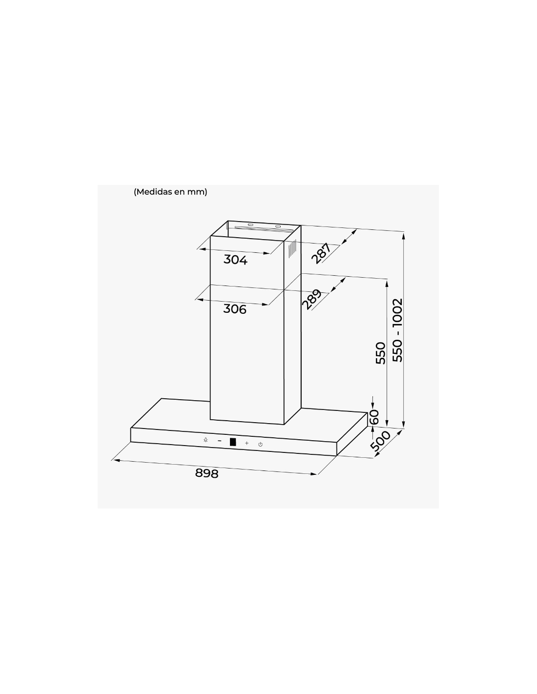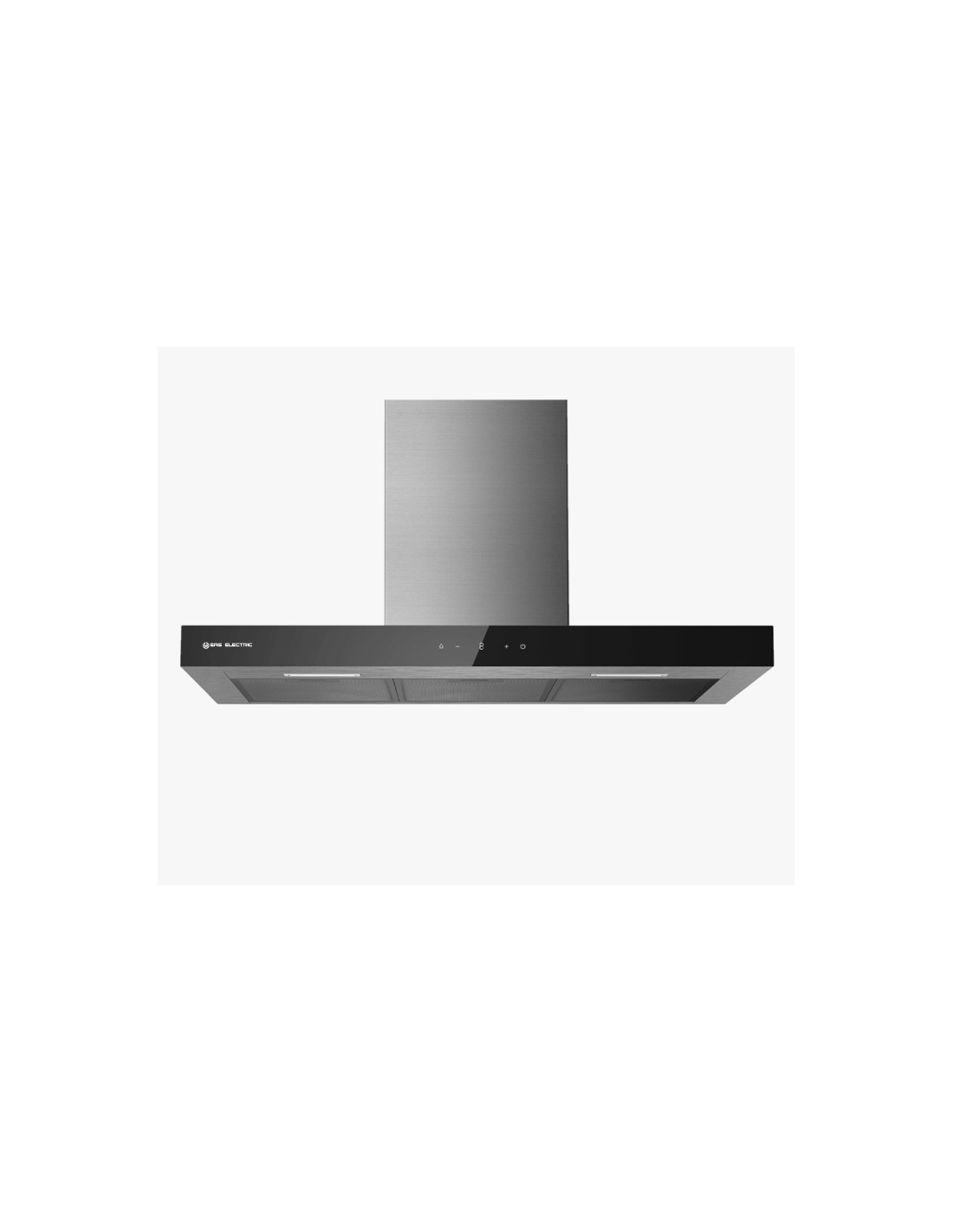 Campana de pared 90 cm color Inox frente en cristal negro