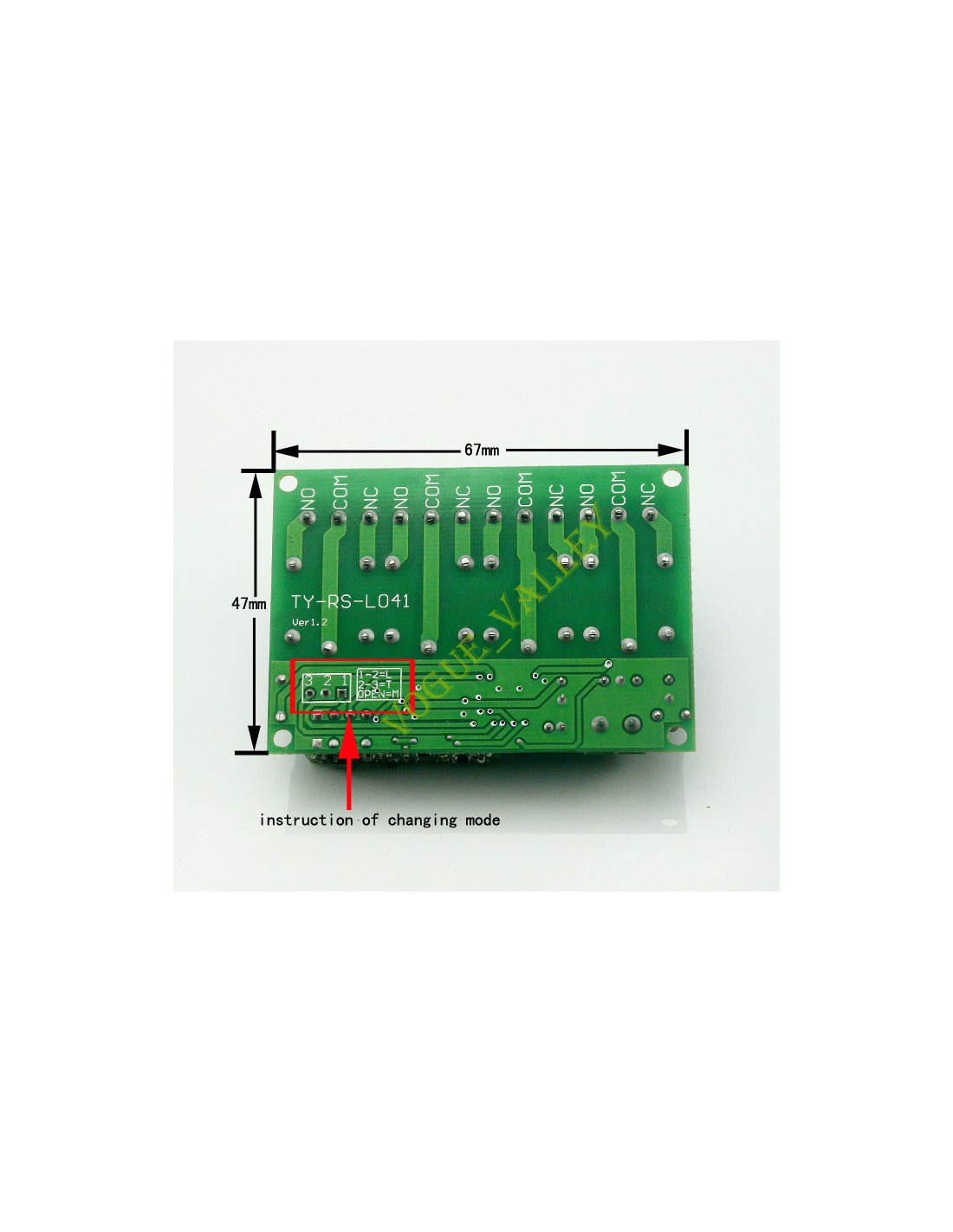- Como alterar o modo de trabalho (fixo, momentâneo ou travado): No receptor há um jumper. Coloque o jumper na posição 2-3 para trabalhar em biestável fixo. Coloque o jumper na posição 1-2 para trabalhar em Latch. Para colocar o trabalho em momentaneamente, remova o jumper.