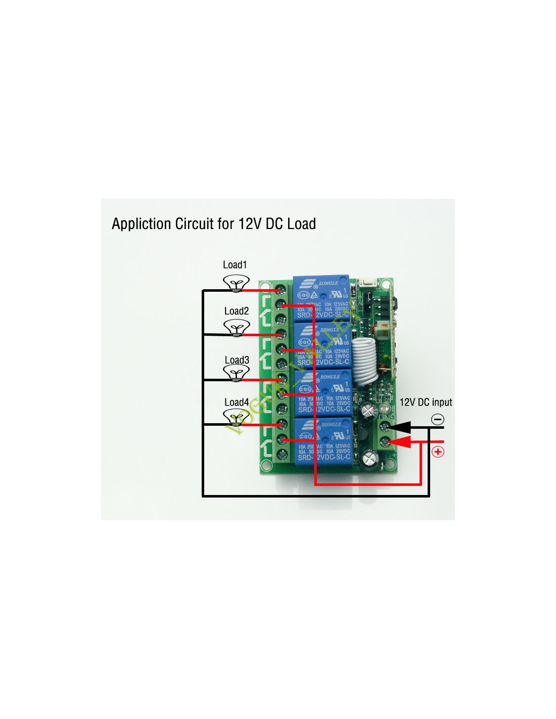 Receptor de 4 canais (4 saídas de relé) + 1 controle de 4 botões