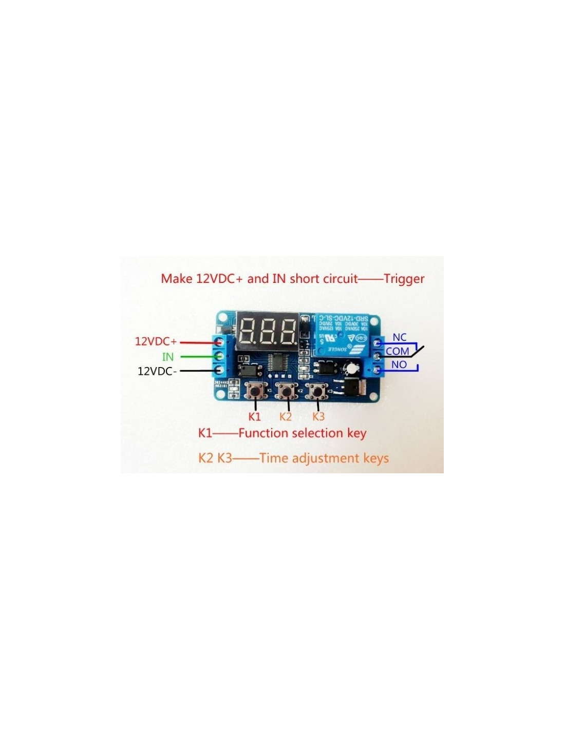 Observe que você pode escolher o tempo do relé LIGADO diferente do tempo do relé DESLIGADO. Para isso, você deve definir as duas vezes. Ao pressionar o botão K2, você primeiro seleciona os 3 dígitos do tempo do relé LIGADO e, em seguida, precisa selecionar os 3 dígitos do tempo do relé DESLIGADO.