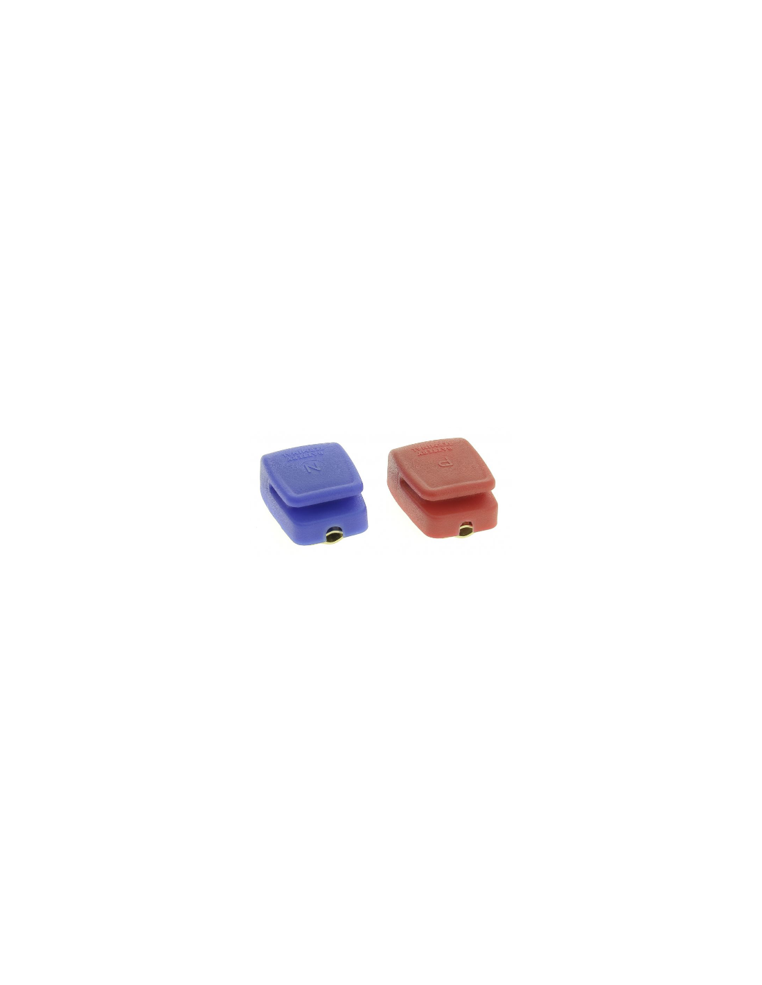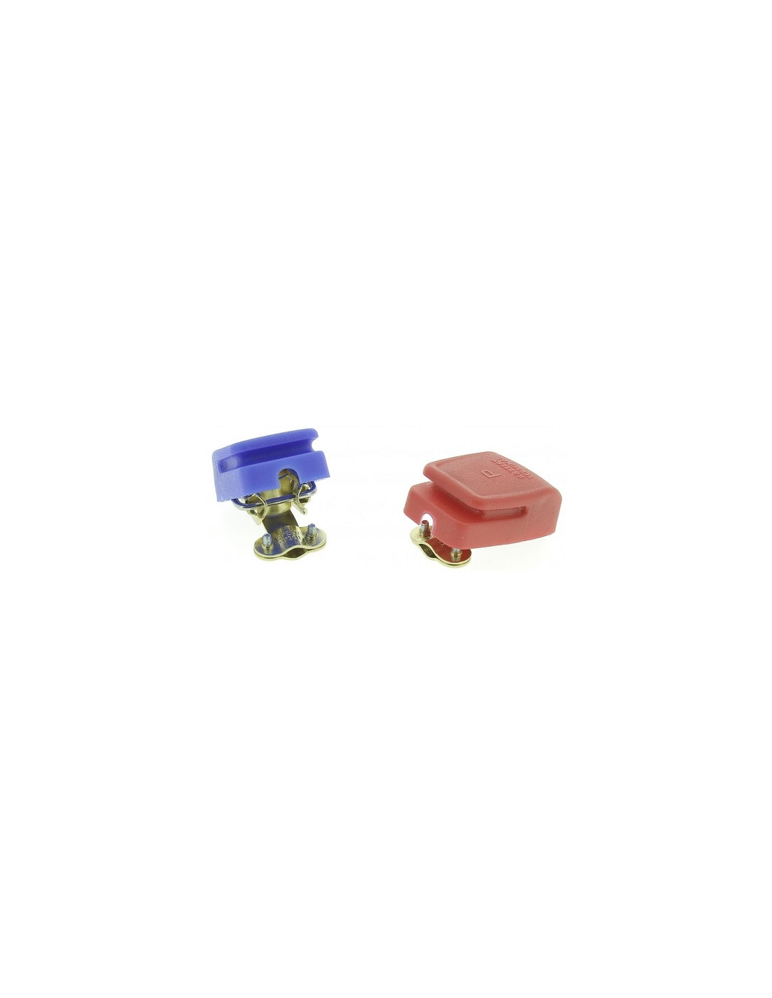 Cada pack inclui dois terminais, um azul e outro vermelho, para poder diferenciar o positivo do negativo.
