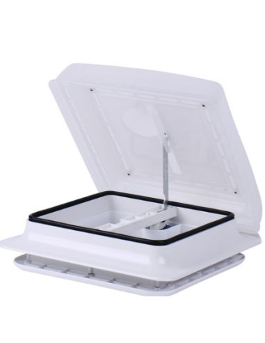 Pode ser aberto e fechado manualmente, pois possui uma manivela na parte inferior.