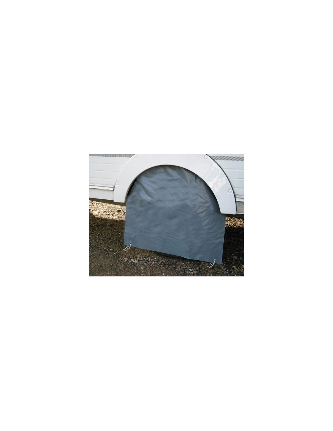 Proteja as rodas da sua autocaravana dos danos causados pelo sol com esta capa especial com 2 pinos inferiores já incluídos na parte inferior para fixá-la ao solo.