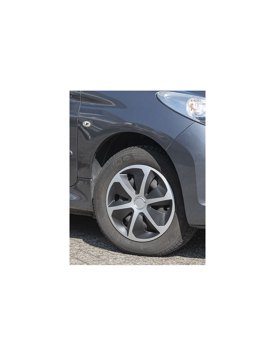 Fácil de encaixar e ajustar com os ganchos de fixação incluídos na parte traseira da calota.
