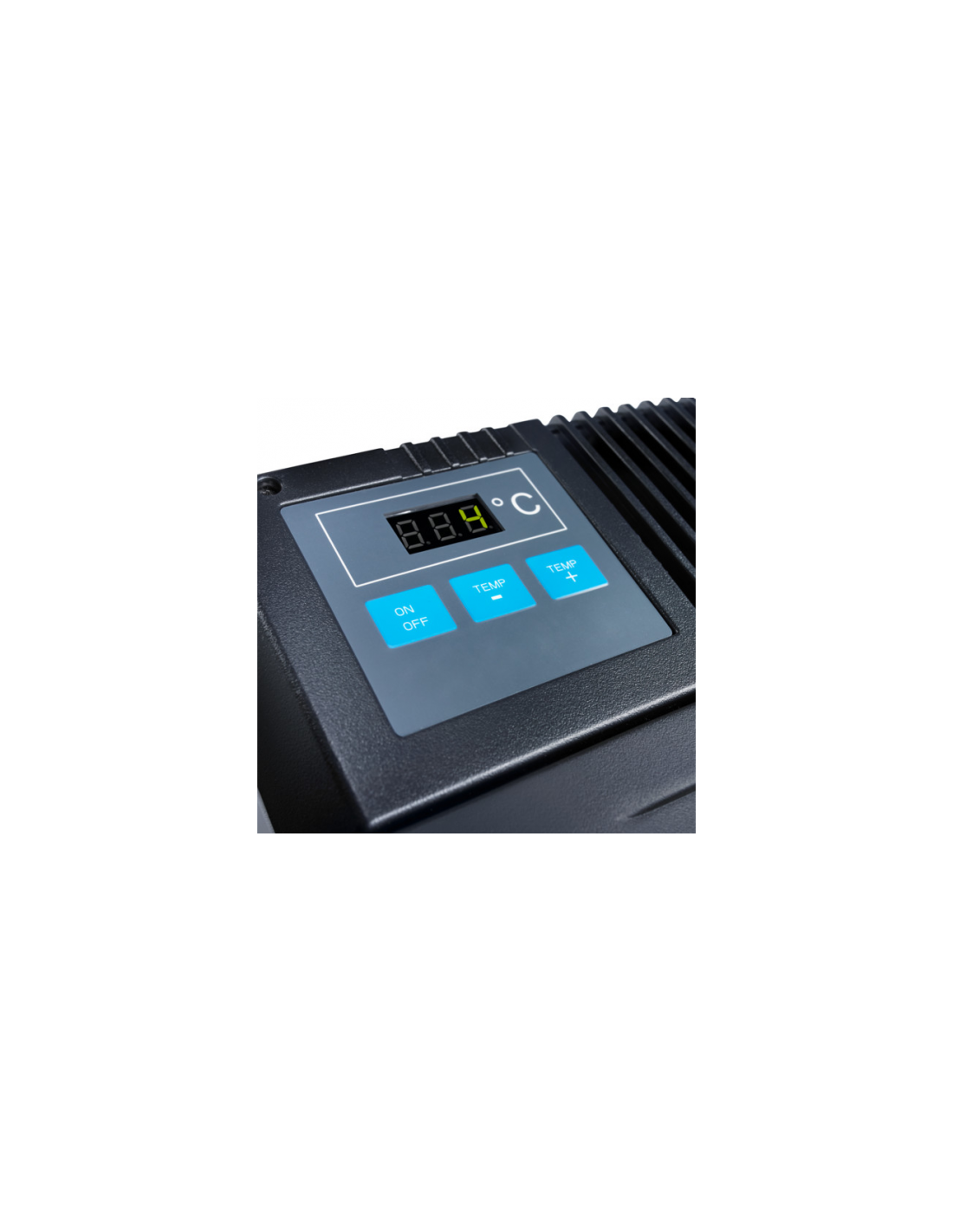 Equipado com uma poderosa refrigeração por compressor através da ligação a 12 ou 24 volts , através da bateria do carro a 12 ou 24 V.