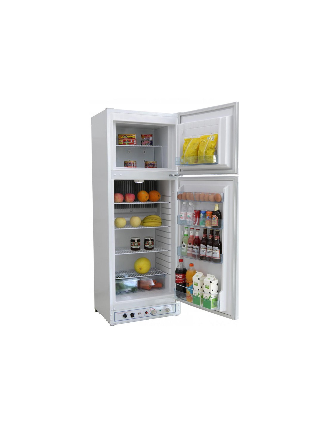 Geladeira com dupla fonte de energia: gás e eletricidade.
