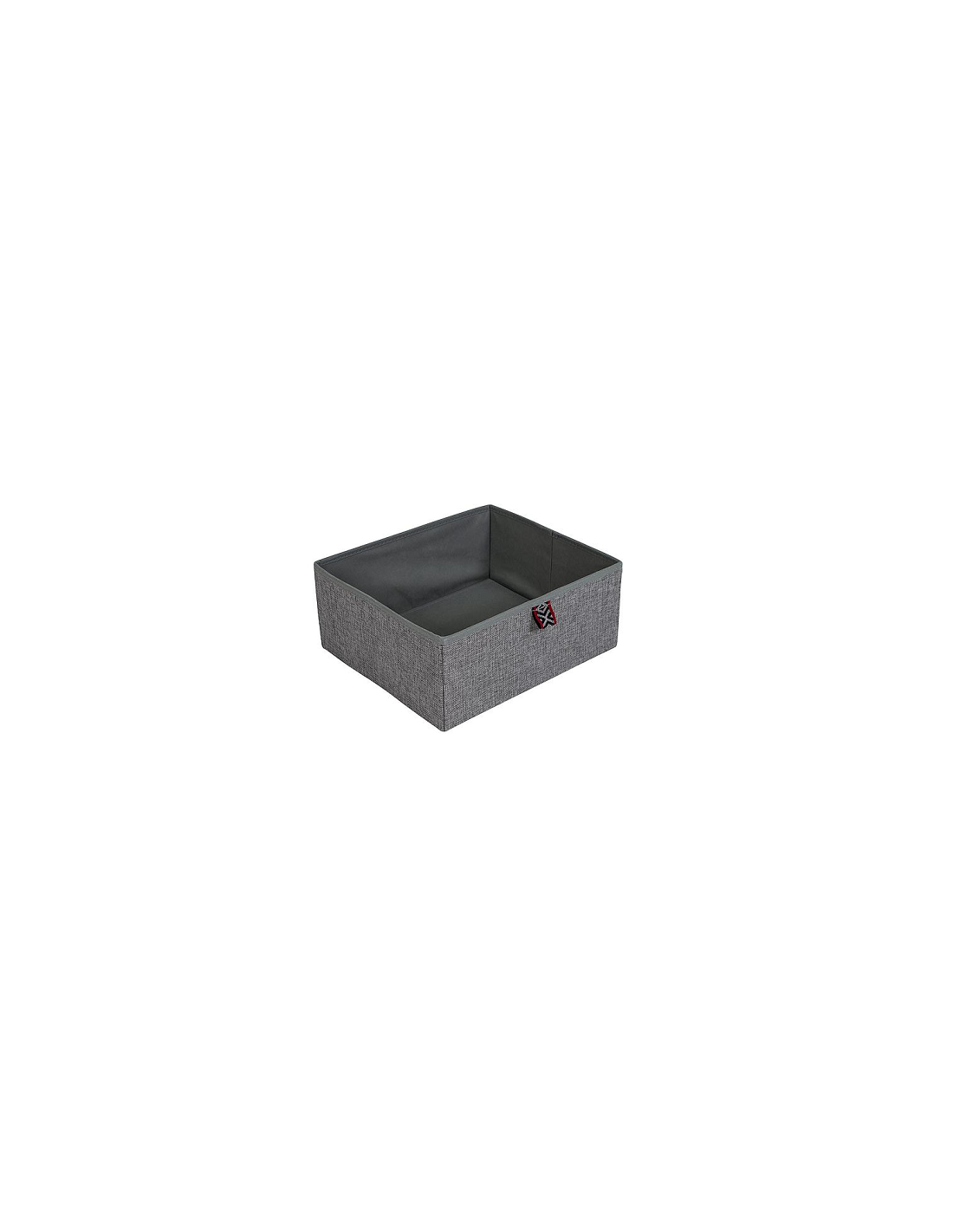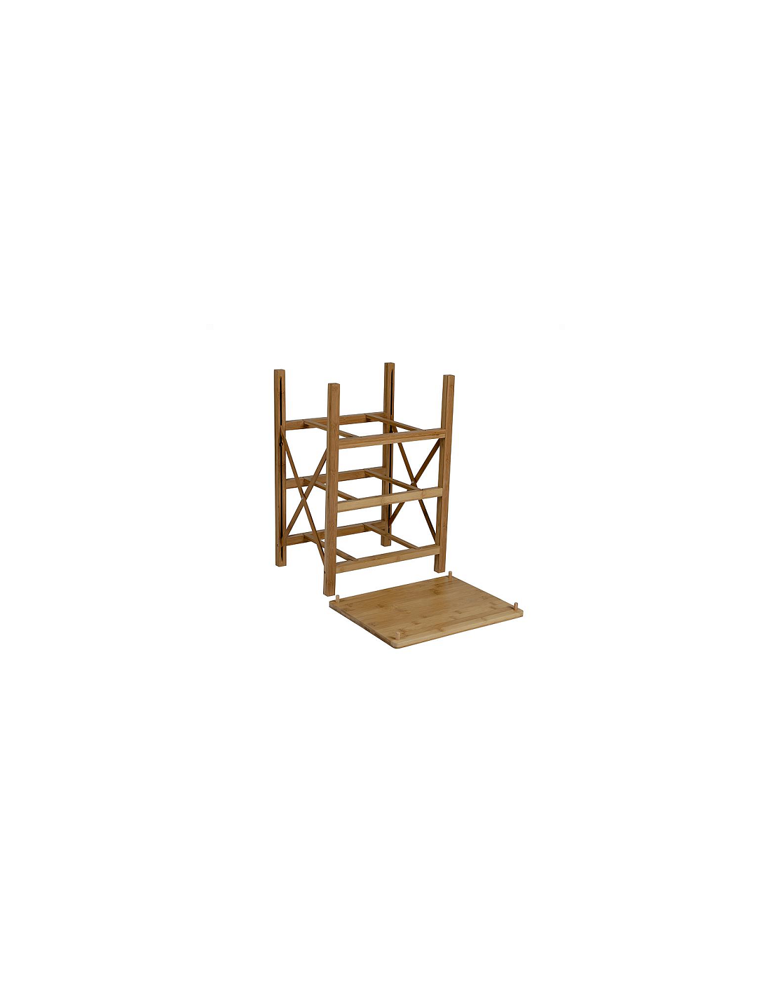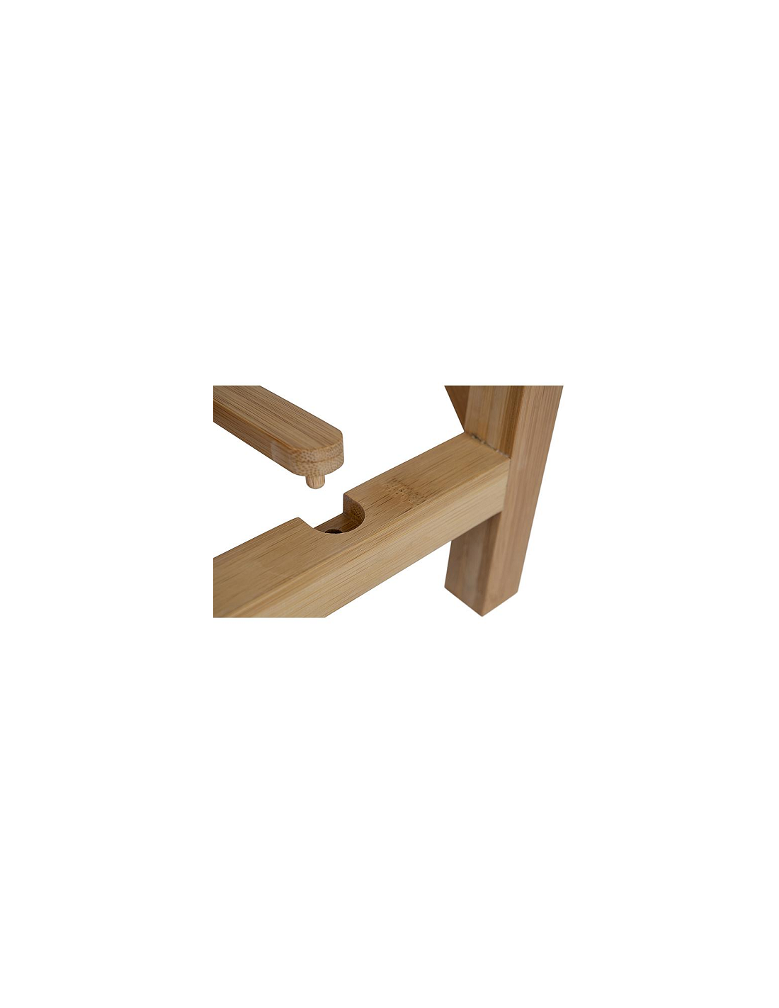 O armário tem uma estrutura de bambu e três gavetas em poliéster 600D Oxford.