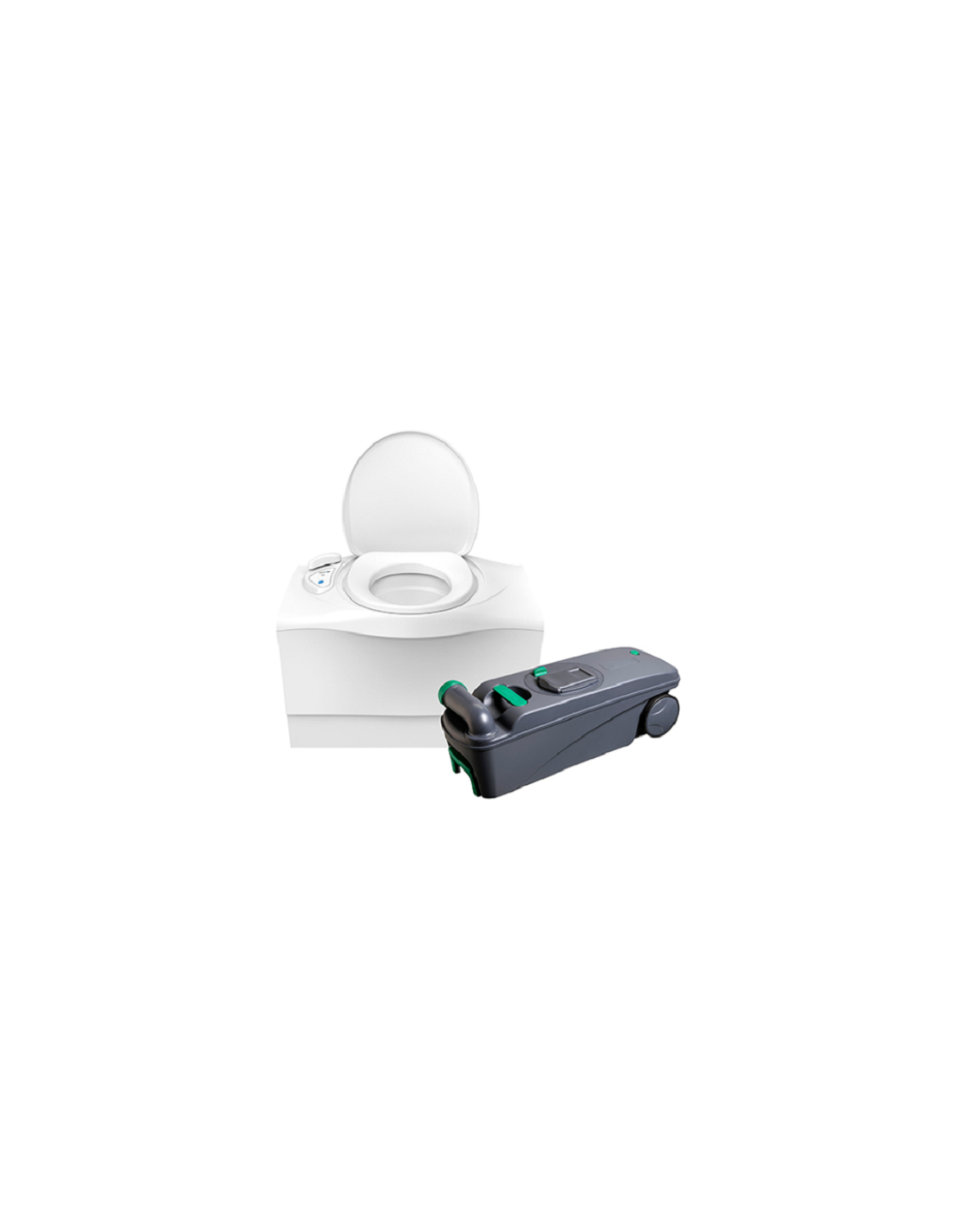 Sanita Fixa Thetford C 403 L Versão Esquerda consiste em duas partes: uma sanita de instalação fixa e um depósito de resíduos ou cassete amovível. Neste caso do lado esquerdo.