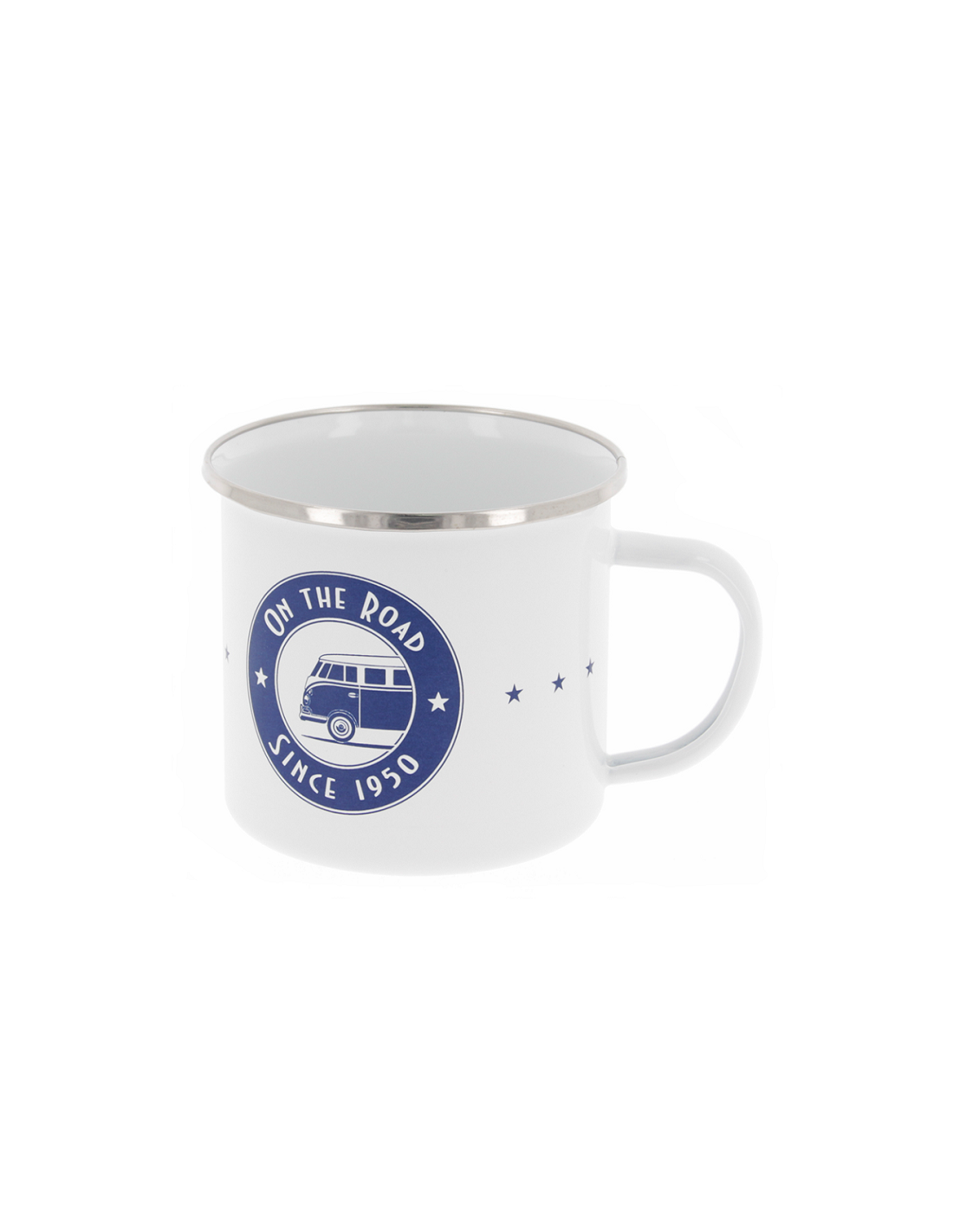 A extraordinária caneca esmaltada com o clássico motivo "On the Road" encanta todos os armários de cozinha com um toque nostálgico.